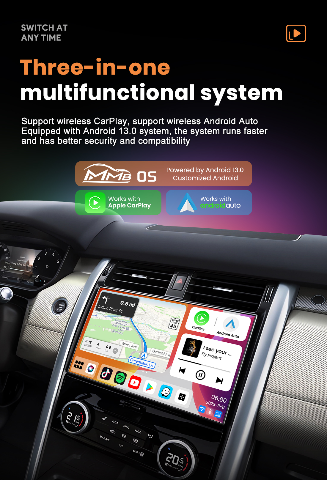 2. 兼容无线 Apple CarPlay,通过蓝牙配对,通过 WIFI 传输
