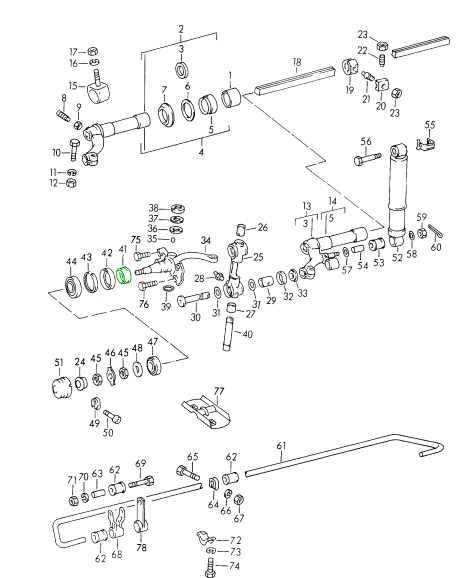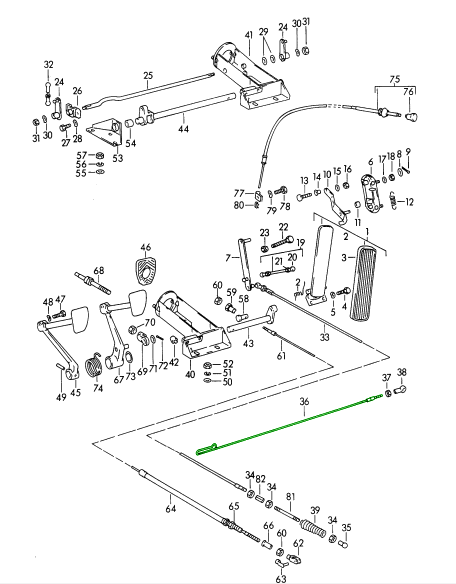 Throttle linkage, rear. Porsche 356 B-T6 / 356 C. Accelerator Pull Rod Pre-A and 356 BT6/C 520 mm.