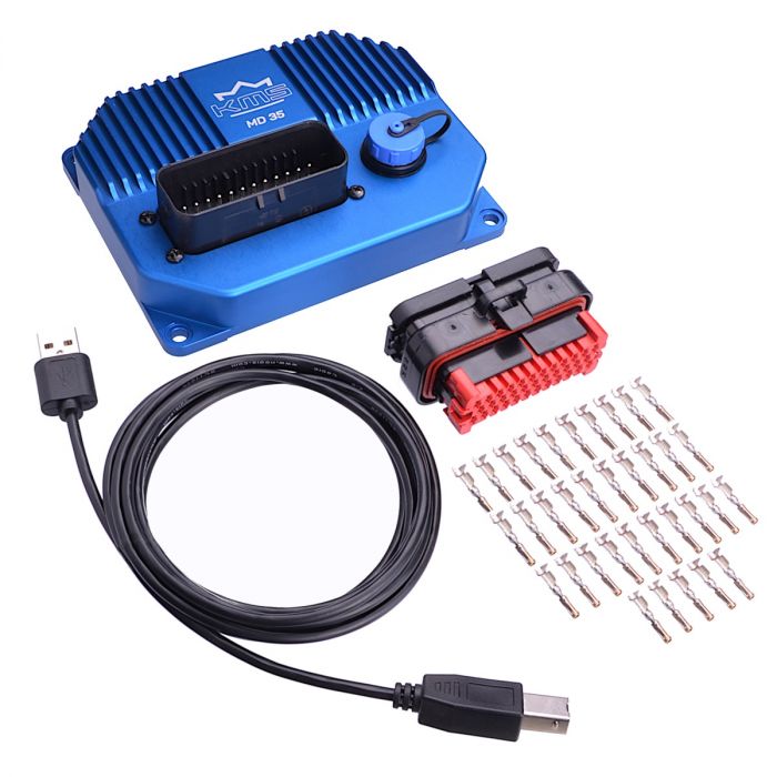 KMS MD35 ECU 套件内含主连接器、通信电缆和接线图。所有必要的软件、固件和手册均可在我们的网站上找到。KMS MD35 线束套件单独出售。