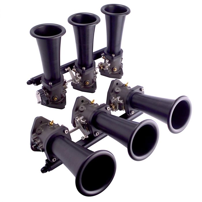 组件的尺寸与 OEM 化油器设置相同,立板带有与 OEM 化油器相同的安装孔,这样您就可以使用 OEM 空气滤清器盒和 OEM 气喇叭。立板还带有进气温度传感器的安装选项,该传感器很好地隐藏在 ITB 之间。立板中 ITB 的直径为 45 毫米。还有一个使用气喇叭的选项,在这种情况下您不需要立板。