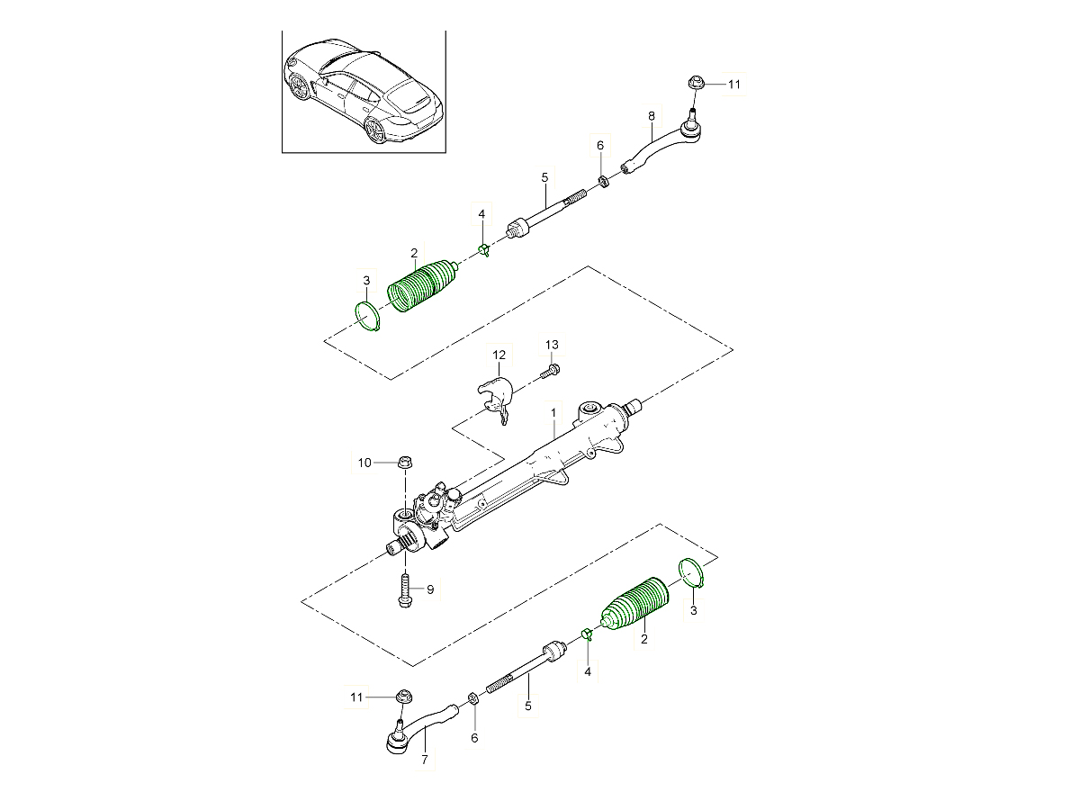 2 x 转向齿条。保时捷 970 Panamera 2010-16 (97034719100/1