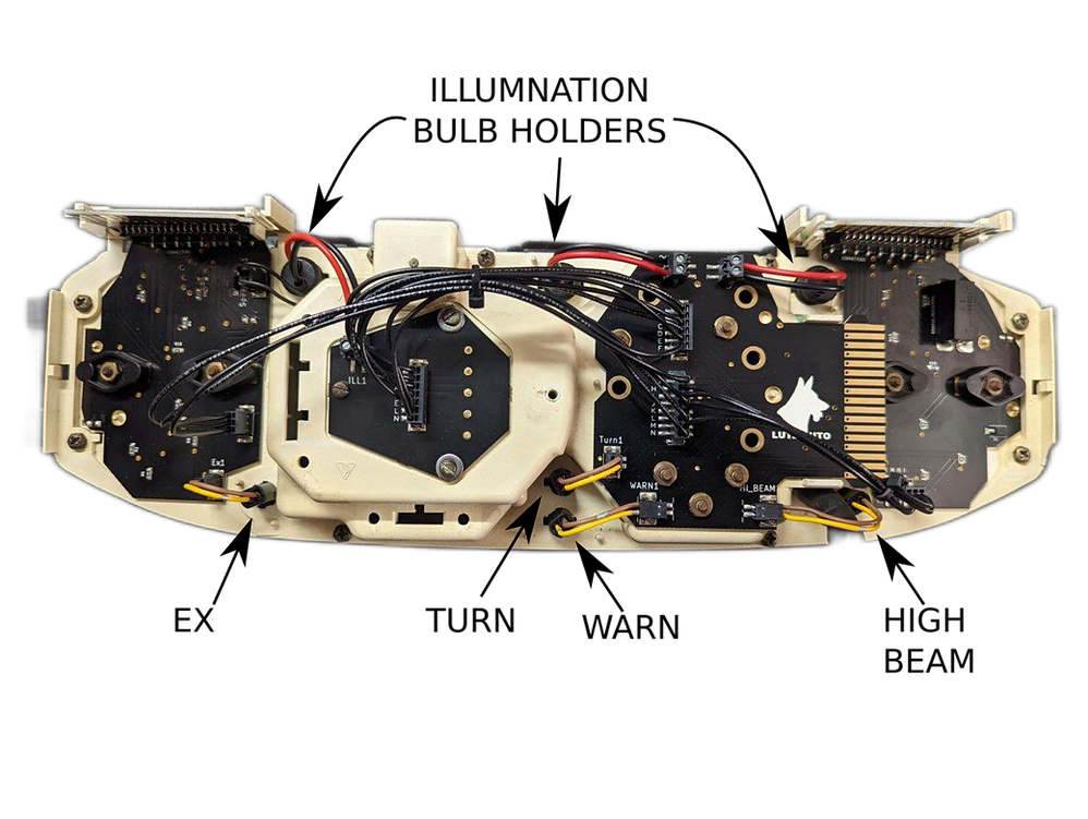 这款 LutzAuto 套件用耐用、现代化的印刷电路板 (PCB)替换了原厂脆弱的柔性电路板,该电路板按照原厂尺寸设计,可直接安装。重新设计的 PCB 恢复了所有仪表和指示器的可靠电气连接,并显著提高了长期耐用性。