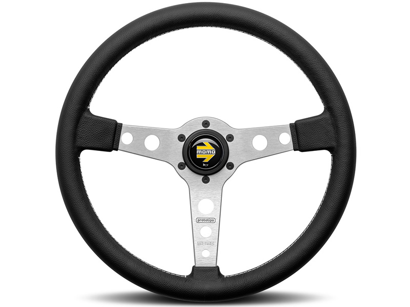 MOMO MOD.07 方向盘专为轿车和拉力赛车设计,深盘面为驾驶员提供最大控制力,顶部的黄色皮革标记可快速参考方向盘位置。方向盘采用黑色绒面革或黑色皮革制成,配有 3 个黑色铝制辐条,喇叭按钮上有 MOMO Italy 标志。所有 MOMO 赛车方向盘均在意大利生产,质量上乘,采用防腐蚀铝制框架。绒面革或皮革覆盖层粘在边缘上,而不是缝合,以提供无缝饰面,提高舒适度和耐用性。