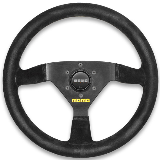 This extremely popular steering wheel is finished in either black suede or black leather and features a slightly profiled grip, black aluminium spokes with a yellow MOMO logo and a MOMO Arrow horn push button in the centre. All MOMO racing steering wheels are produced in Italy to the highest quality with anticorodal aluminium frames. The suede or leather covering is glued to the rim, instead of being stitched, to provide a seamless finish for greater comfort and durability.
