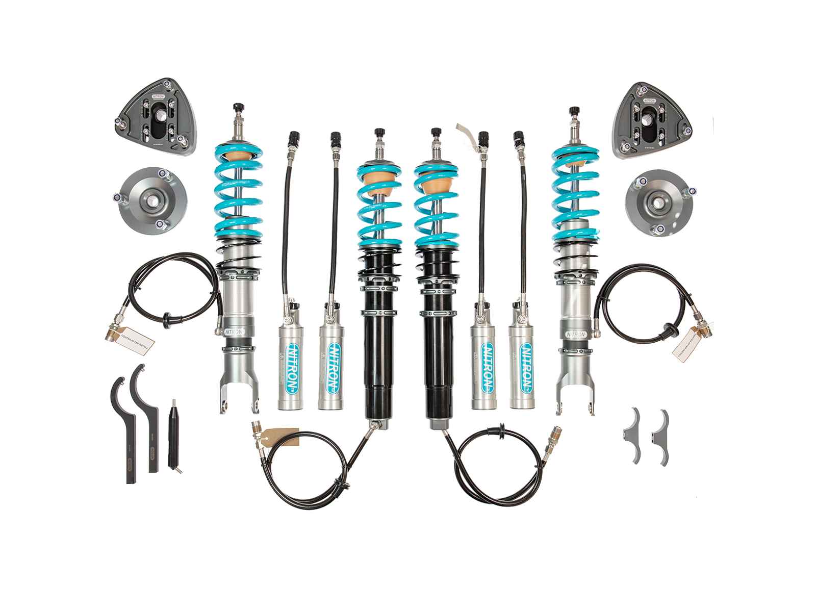 套件齐全,可与 Nitron 赛车弹簧(包括需要的辅助装置)和顶部支架配合使用。