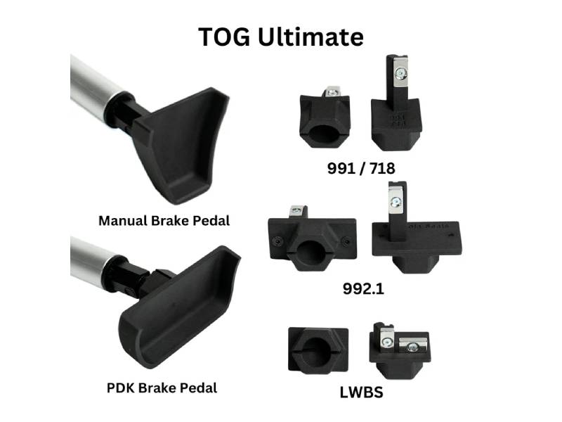 TOG采用车辆专用座椅导轨嵌件、 PDK或手动挡专用踏板罩以及德国制造的反向夹具,将制动踏板牢固地锁定在接合位置。强力钕磁铁确保其在座椅导轨上的稳定定位,而高强度耐磨的3201PA-F尼龙材质则保证了其在车间或赛道上的反复使用中的耐用性。