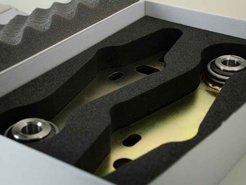 它们包括赛车级球面轴承、聚氨酯支撑衬套和轴承密封件、与 OE 相同等级的镀锌弹簧钢板以及不锈钢 CNC 加工套筒和偏心适配器。