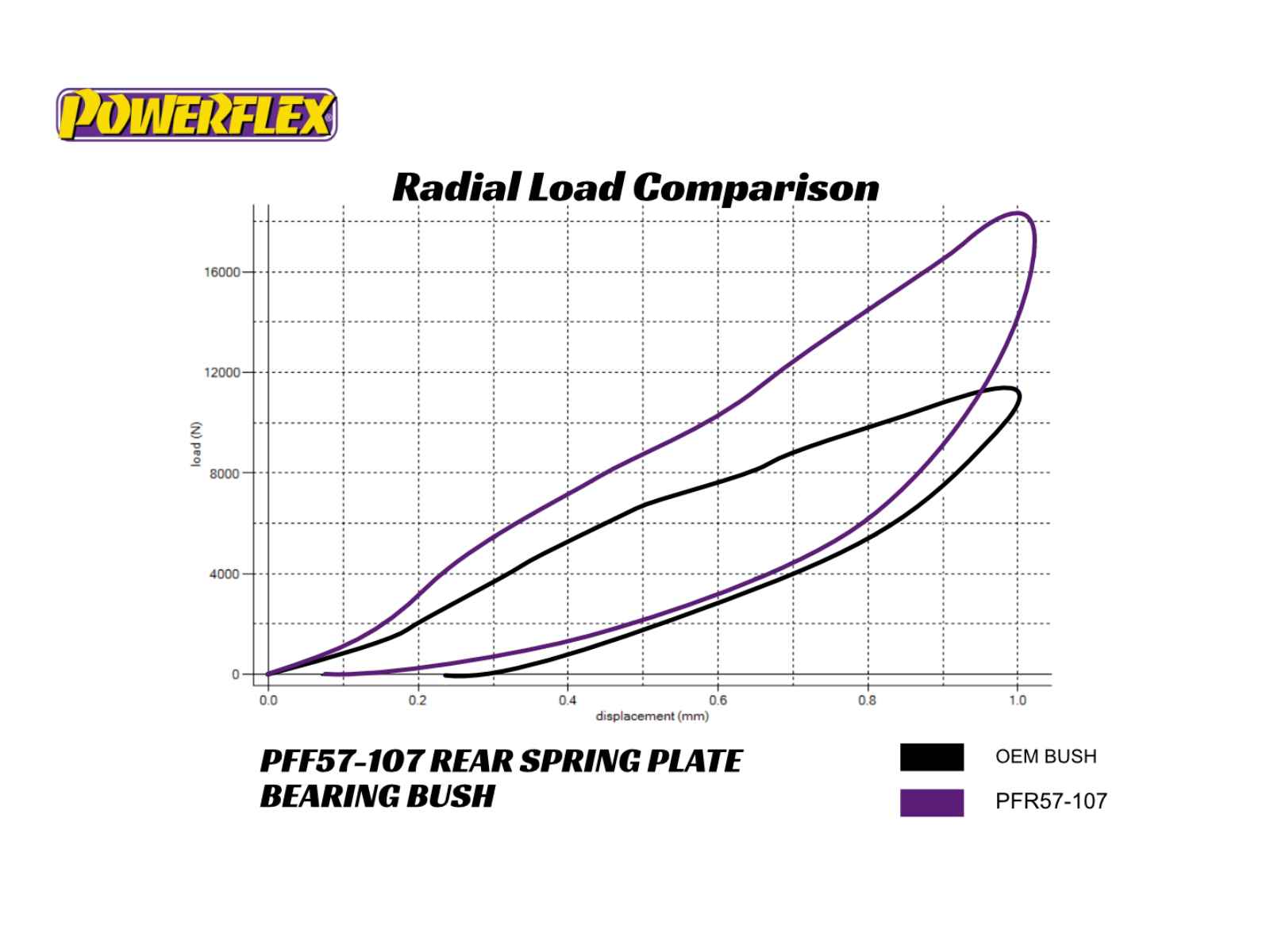 Powerflex 黑色系列衬套采用 95 肖氏硬度 A 复合材料制成,可最大程度地控制底盘几何形状。这种复合材料的抗负载能力比标准橡胶高出 80%,硬度比我们的紫色高性能材料高出 25%。