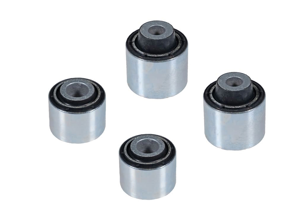 This 4-piece bushing set combines the big and small concentric bushes in Sport version (85 Shore rating). Designed for direct replacement of the concentric bushes at the rear wheel carrier (hub) mounts, it provides balanced support and consistent suspension behaviour across both rear sides of the vehicle.