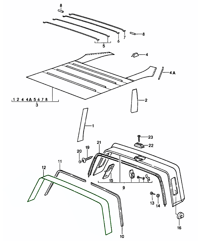 1x 后面板/行李架- 带扬声器、扬声器格栅、后雨刷切口和安全带穿过装置。
