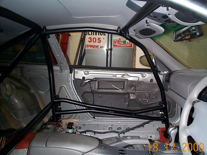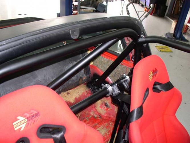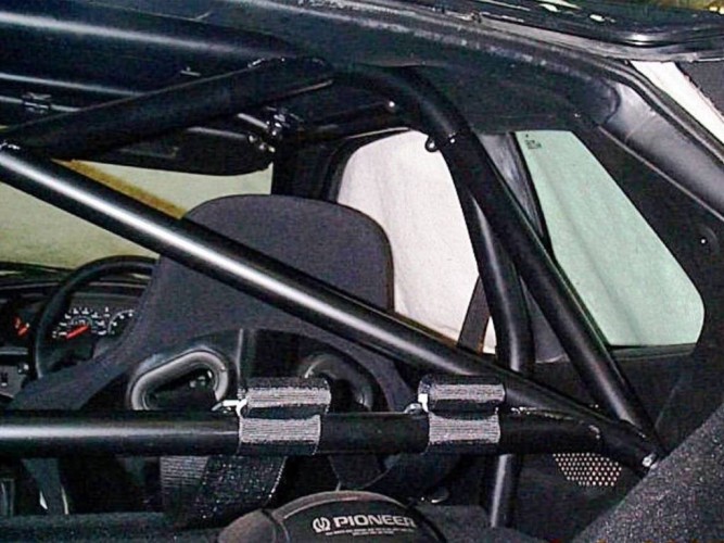 FIA 认证的 6 点螺栓式防滚架,用于独特的单门防滚架,可避开普通装饰和仪表板。安装在门槛和后轮拱上,并允许使用惯性卷轴安全带。