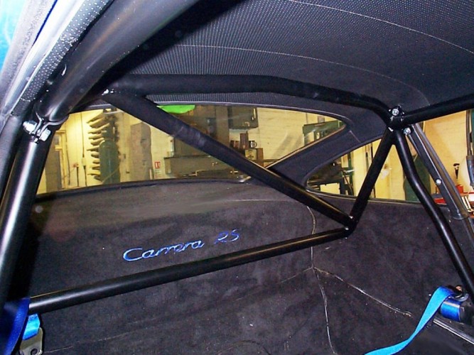 防滚架采用 6 点螺栓固定,带单门杆。对于没有天窗的汽车