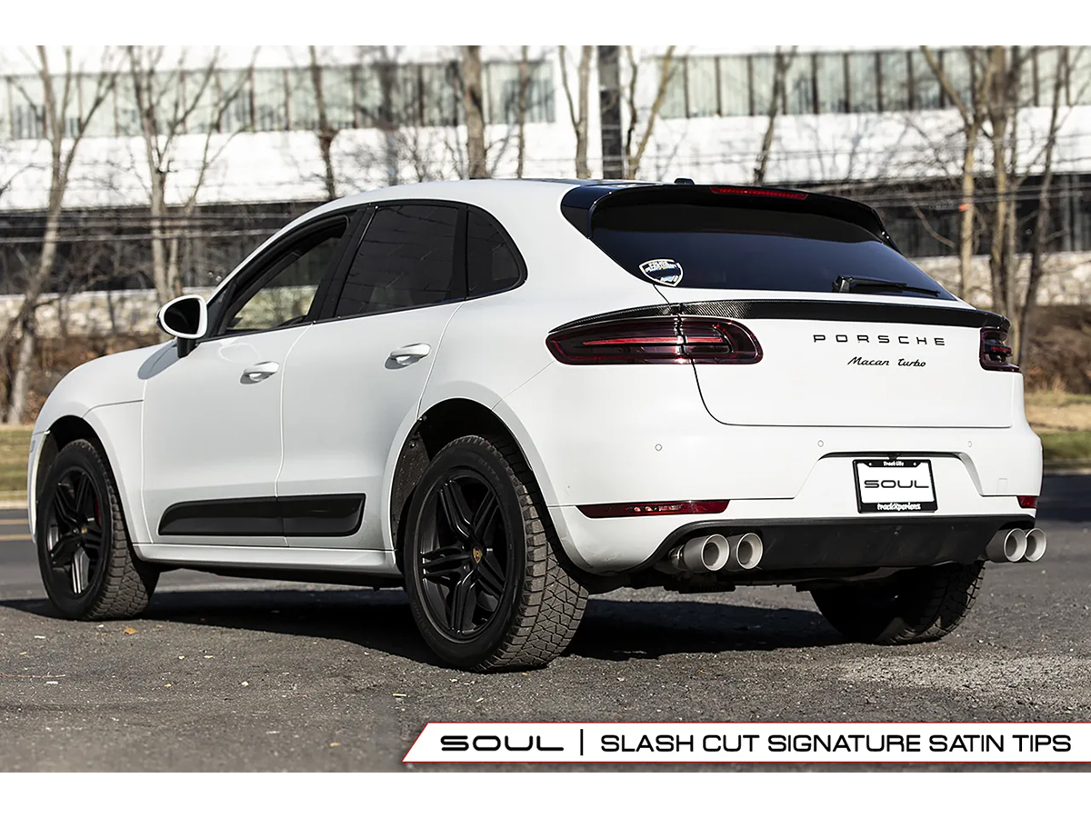 保时捷 Macan 2.0T 的原厂配置令人印象深刻,拥有出色的隔音效果和经过深度消音的排气系统。在研发过程中,SOUL 的工程师发现原厂中段排气管本身就已经非常平顺且排气量大,但后段消音器却限制了性能和个性。SOUL 共振消音器旁通排气系统采用轻量化、可夹持的 2.5 英寸直管设计,取代了原厂消音器,并融入了赛车共振腔,在保持强劲排气音效的同时,有效降低了车厢噪音。这款直通共振系统可在加速时释放出更强劲的涡轮增压和发动机声浪,同时保持巡航噪音的低调。Y 型排气管采用四出排气嘴设计,优化了排气分配,并可调节排气嘴排列,以实现齐平或交错的排气效果。