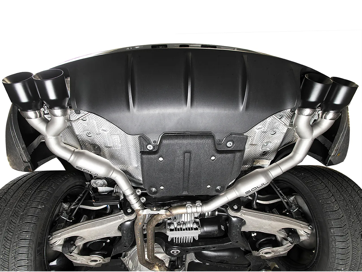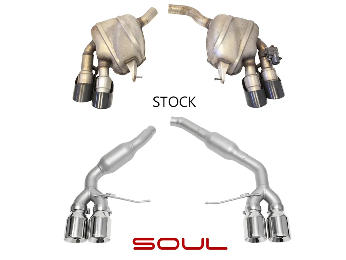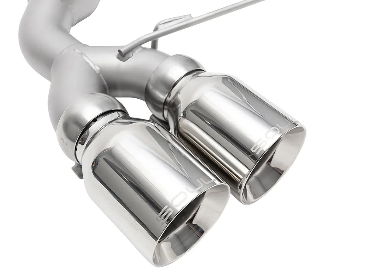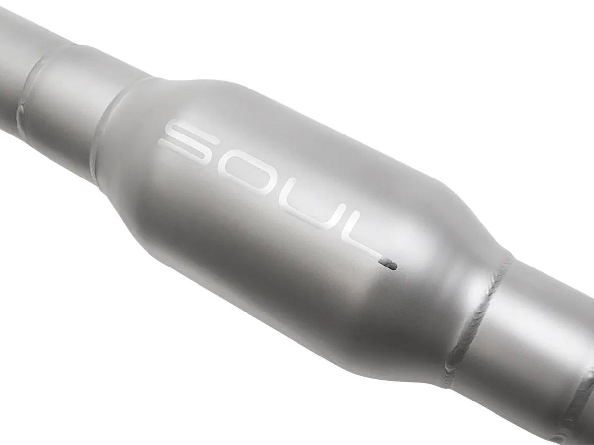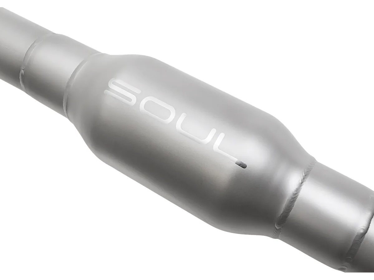 SOUL 的芯轴弯曲 2.5 英寸后部系统可精细增强换档吠叫、汩汩声和发动机音调,同时通过高流量赛车谐振器最大限度地减少嗡嗡声。