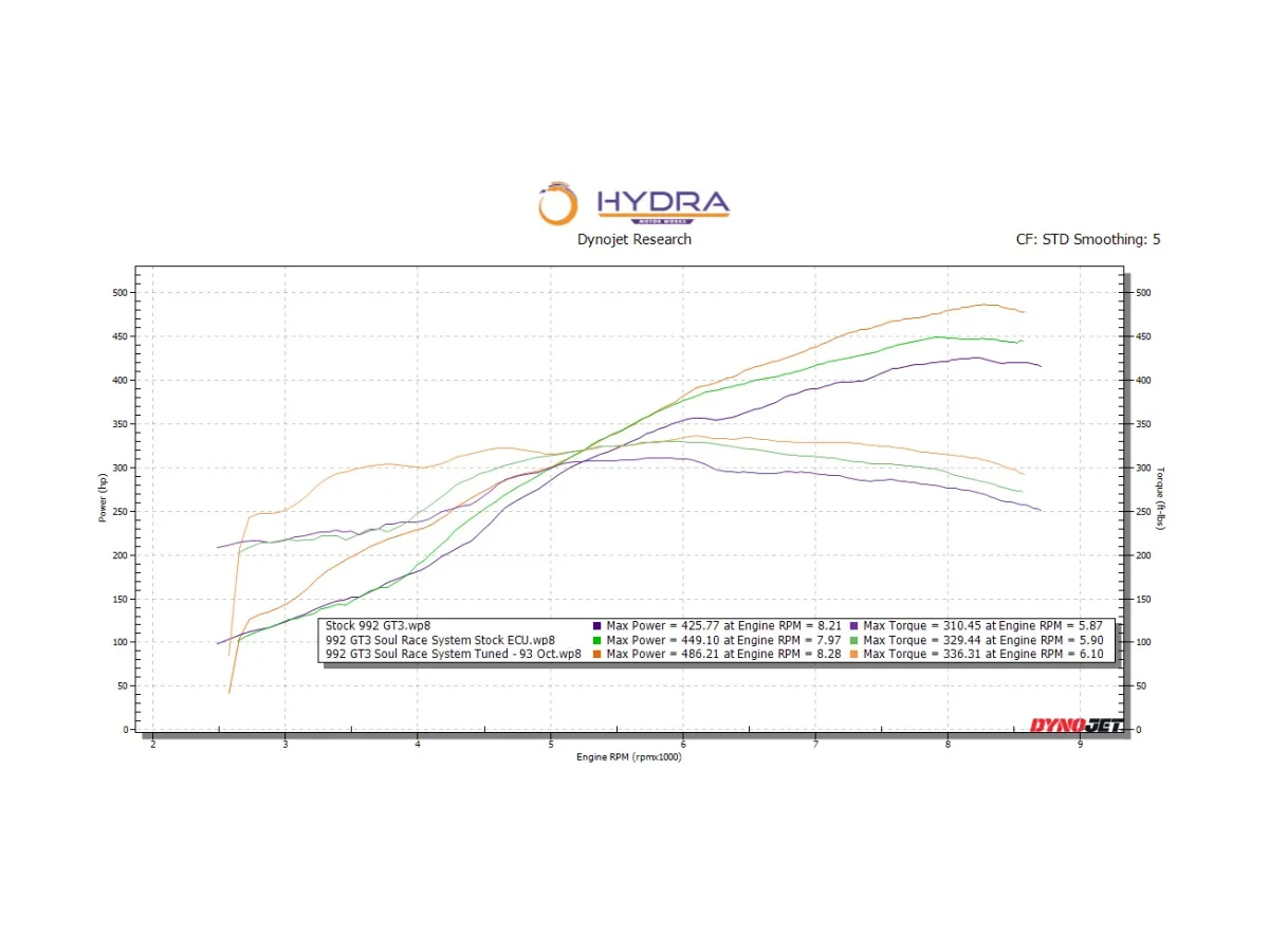 •添加 Hydra Stage 2 ECU 调节后,扭矩峰值可增加 +60 whp / +26 ft-lbs