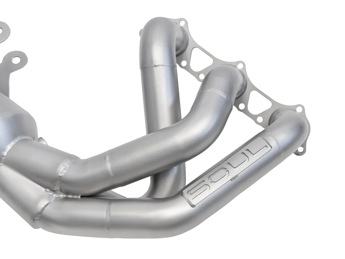 SOUL Street Headers 围绕大直径、自由流动的催化转化器构建,配有优化的铸造法兰和流道,可最大限度地提高 992 GT3 的 4.0 升水平对置六缸发动机的功率、油门响应和音调。