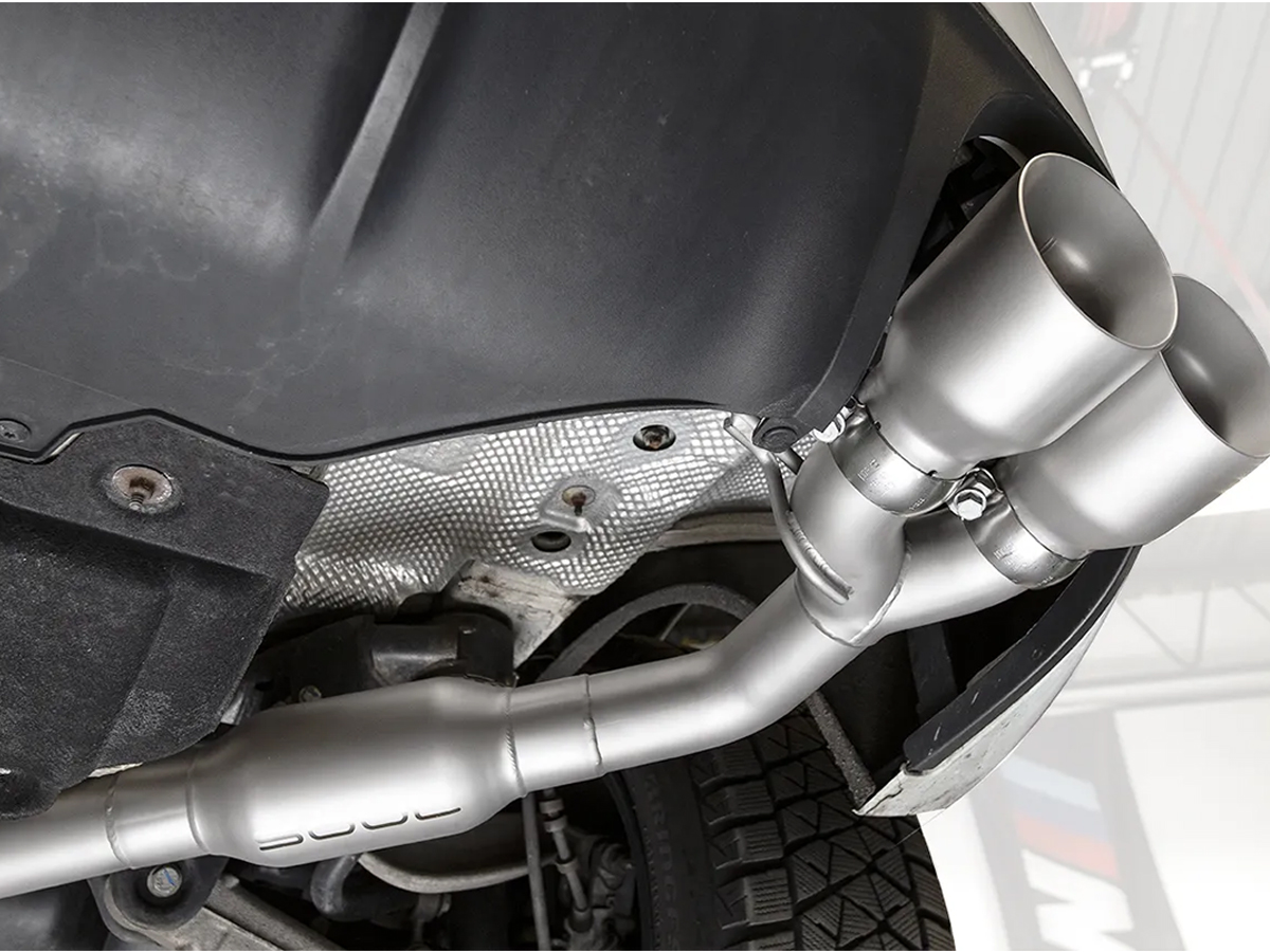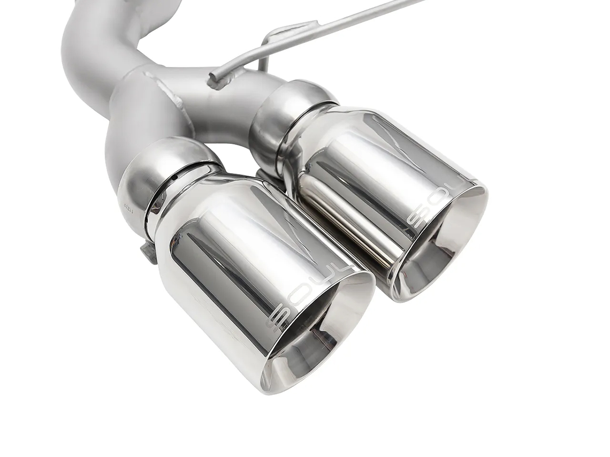 这套系统的设计以赛道性能为先,而非噪音抑制。它的声音非常大,即使使用共振腔,也会产生一些嗡嗡声。我们不建议将此排气系统与改装排气歧管搭配使用用于街道驾驶。然而,当油门全开时,它的声音令人振奋——原始、激进,并且拥有毋庸置疑的赛车风格。如果您需要更均衡的日常驾驶选择,我们推荐带阀门排气系统。