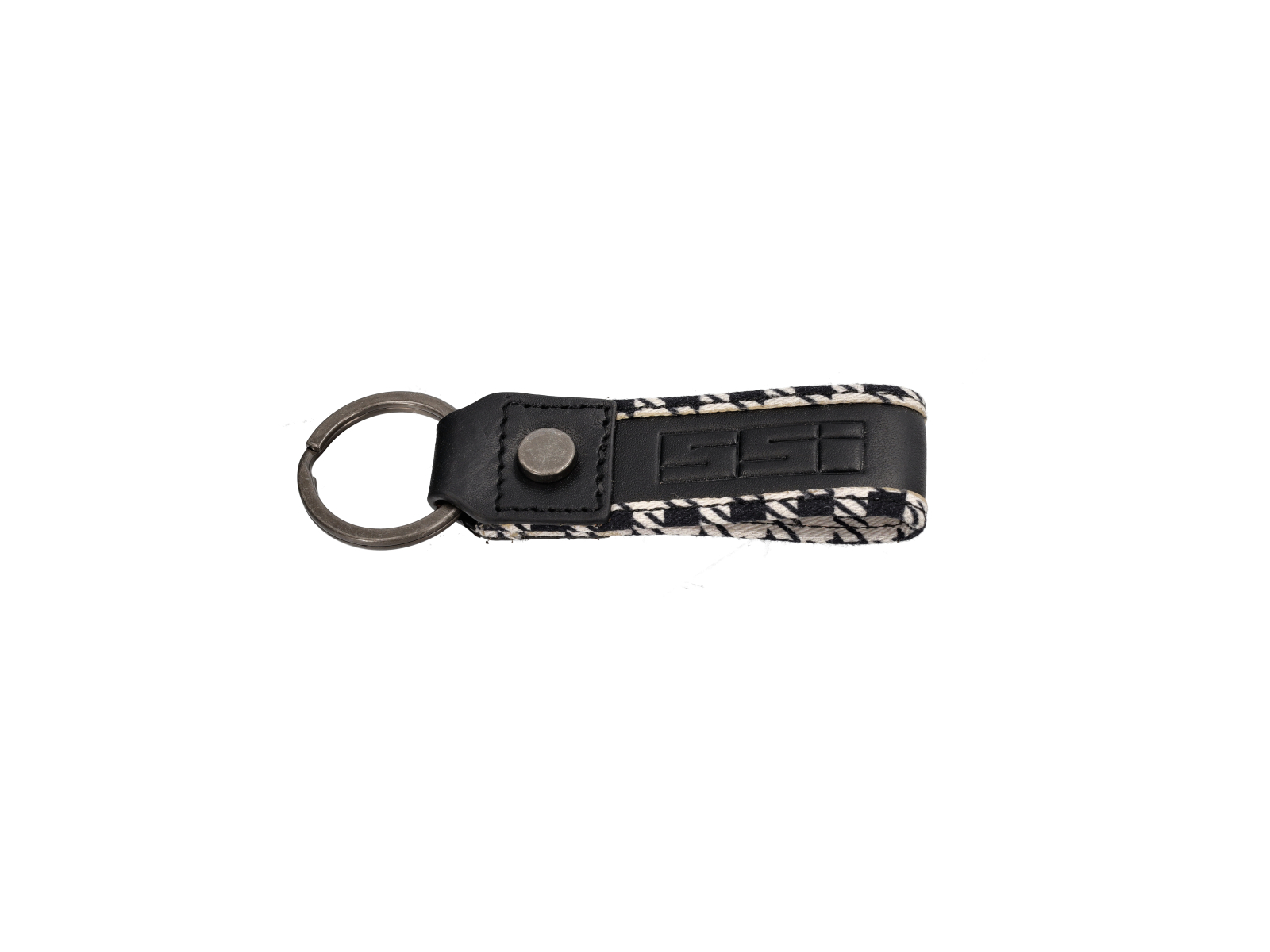 为了让您的旅途更加顺畅,我们推出了这款带有别致的白色格子图案的优雅黑色皮革钥匙圈。