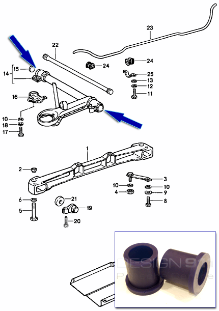 SuperPro 替换弹簧板衬套。更换保时捷零件编号 91133300900