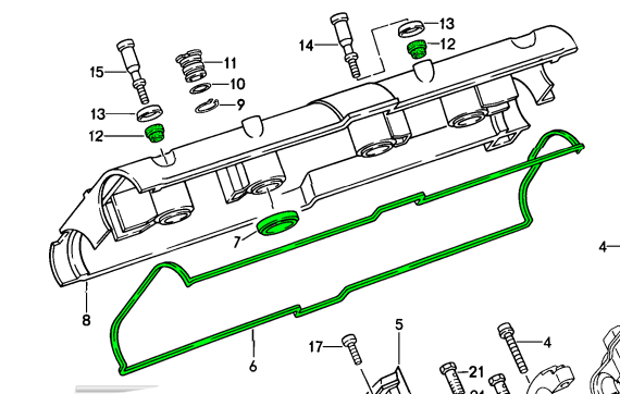 OEM 凸轮盖垫片组适合所有型号的 944S(2.5L 16V)和 944S2(3.0L 16V)。