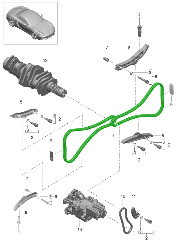 四气门技术是这些坚固耐用的发动机的敏感部件之一:定期更换链条及其滑动元件对于避免重大损坏至关重要。正时链条维护套件是“德国制造”的优质产品。