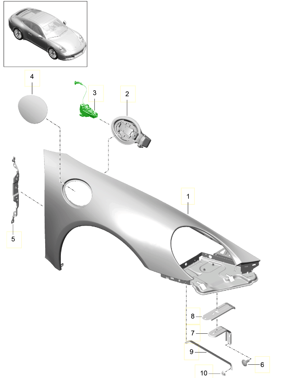 燃油加注口盖板执行器盖 - 黑色塑料。保时捷 991 Turbo / GT2 RS / 991.2 GT3 RS - 99150486000