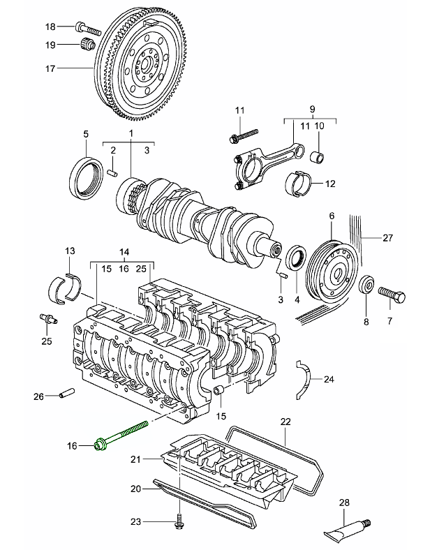 曲轴箱通孔螺栓套件, 11 件套。保时捷 911 3.0L 至 3.3L 发动机。
