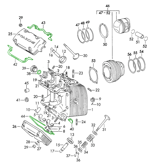气缸盖气门室盖密封圈。4-6缸。保时捷991 GT3 / 992 GT3 / Spyder / GT4RS - 0PB109092