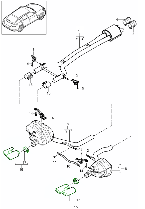 排气尾管钛合金。保时捷 9YB 卡宴涡轮增压 E-Hybrid GT Coupe - 9Y325382