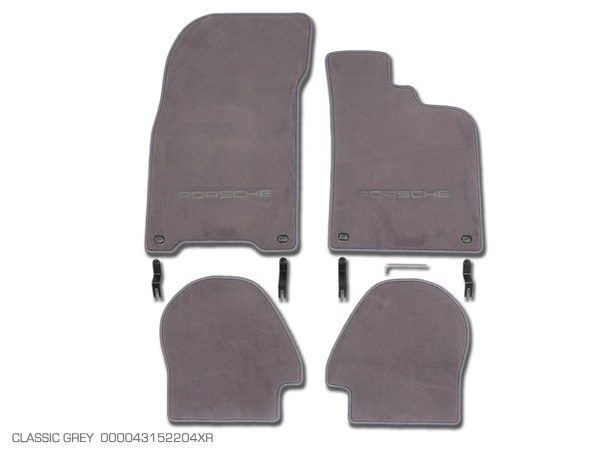 定制地垫,带磨砂皮革边缘和“PORSCHE”标志,底部防水防滑。采用特殊紧固系统固定。