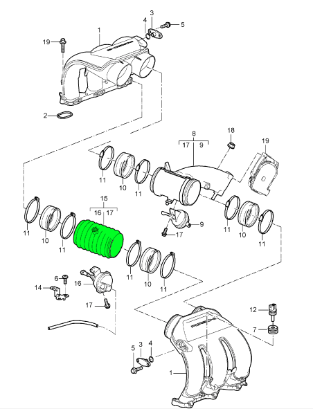 新鲜空气进气软管套件。保时捷 996 Carrera、Targa 1999-04 / 997 Carrera - KIT201