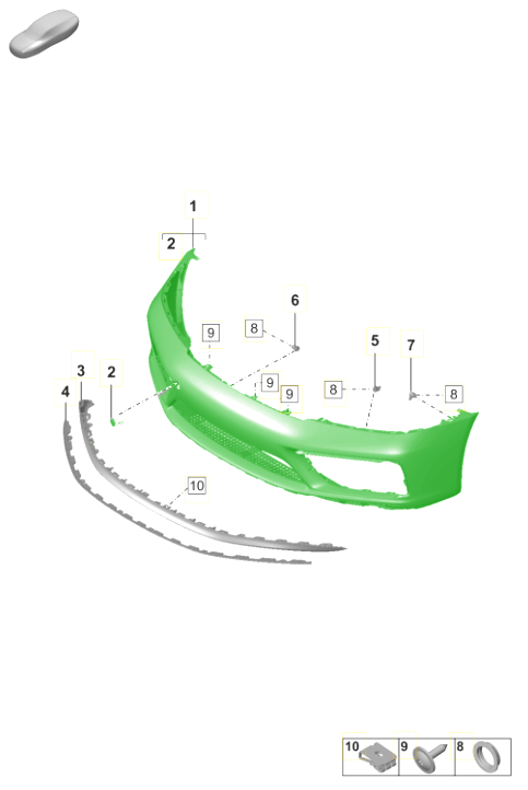 前保险杠 993 EVO 2 外观。保险杠由玻璃纤维(轻质部件)制成。