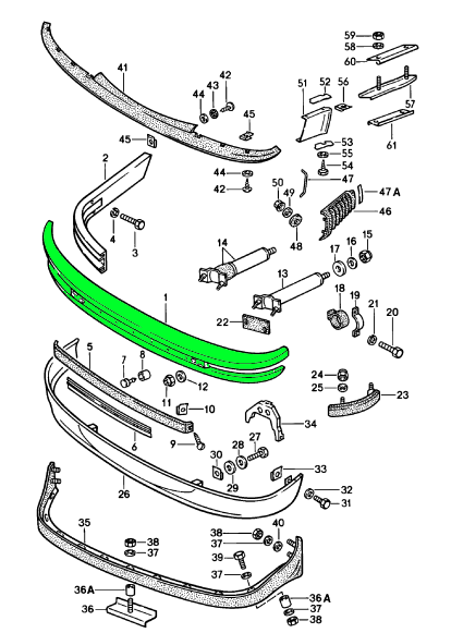 Front bumper. The front bumper is made from fiberglass (lightweight parts)