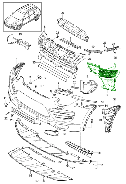 Front bumper side grille slat, upper. Porsche 95B.2 Macan / 95B.3 Macan - 95B80768
