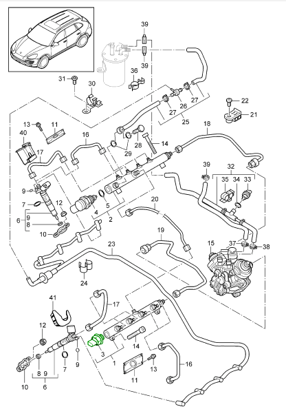 直接更换安装在燃油轨上的保时捷 911 Carrera 3.2 '84-89 燃油压力阻尼器。