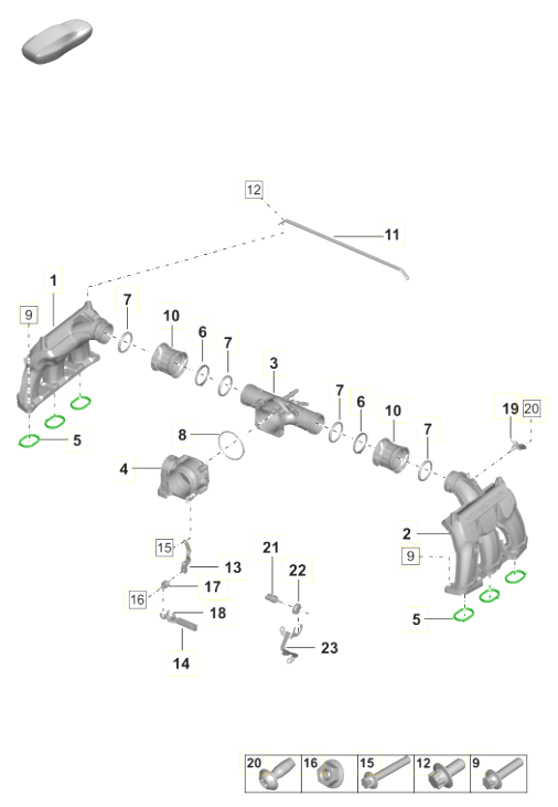 Intake manifold gasket. Porsche 982 Boxster / 982 Cayman / 991.2 Carrera - 0PB129646D