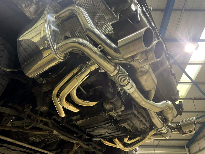 Milltek 运动型排气系统配有 GPF/OPF 旁通、拉丝钛合金 GT-115 排气管。