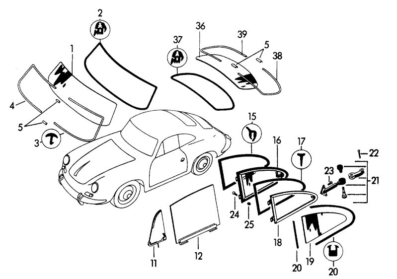 后 1/4 玻璃密封。保时捷 911 - 91154303