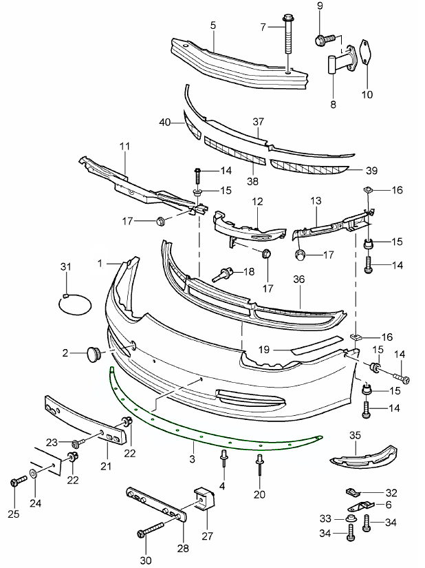 前下扰流板,黑色。保时捷 955 Cayenne 3.2L / 4.5L - 95550506100