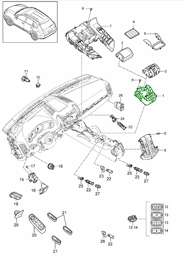 中央控制台 LED 套件。保时捷 964 /993 - 96463213001