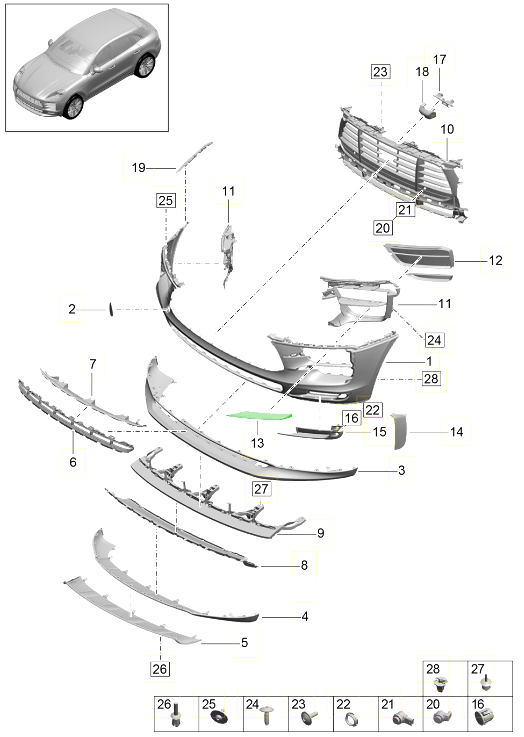 Front bumper wire mesh side grille. Porsche 991 GT3 - 99150571