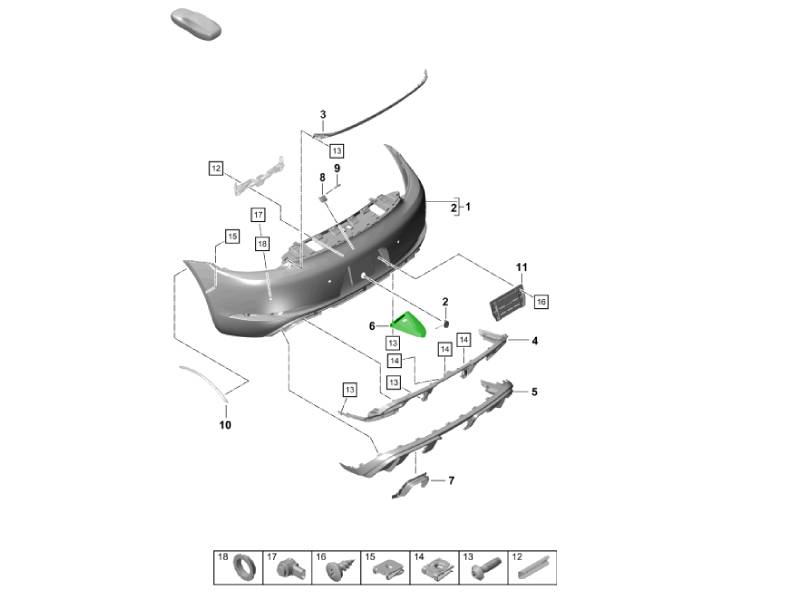 Rear bumper exhaust trim. Porsche 958 Cayenne MKIII - 95850583