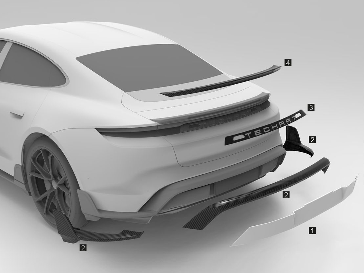 后保险杠。后扰流板由玻璃纤维制成(轻质部件)