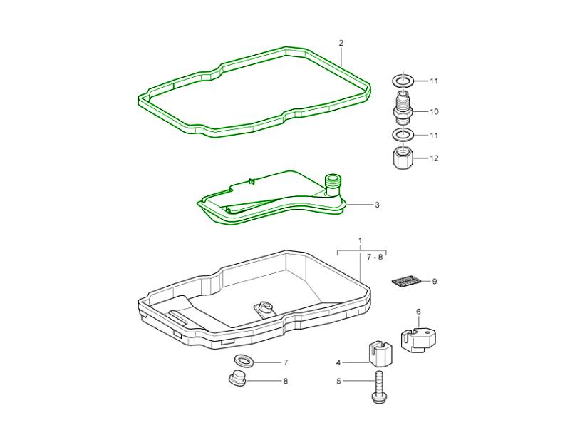 Tiptronic/自动变速箱滤清器套件。 Tiptronic /自动变速箱滤清器套件是原厂配套的变速箱保养组件,旨在维护自动变速箱系统内的正常过滤和油液清洁。该套件通常包含原厂配套的变速箱油滤清器和密封件,以及日常变速箱保养所需的8升变速箱油。