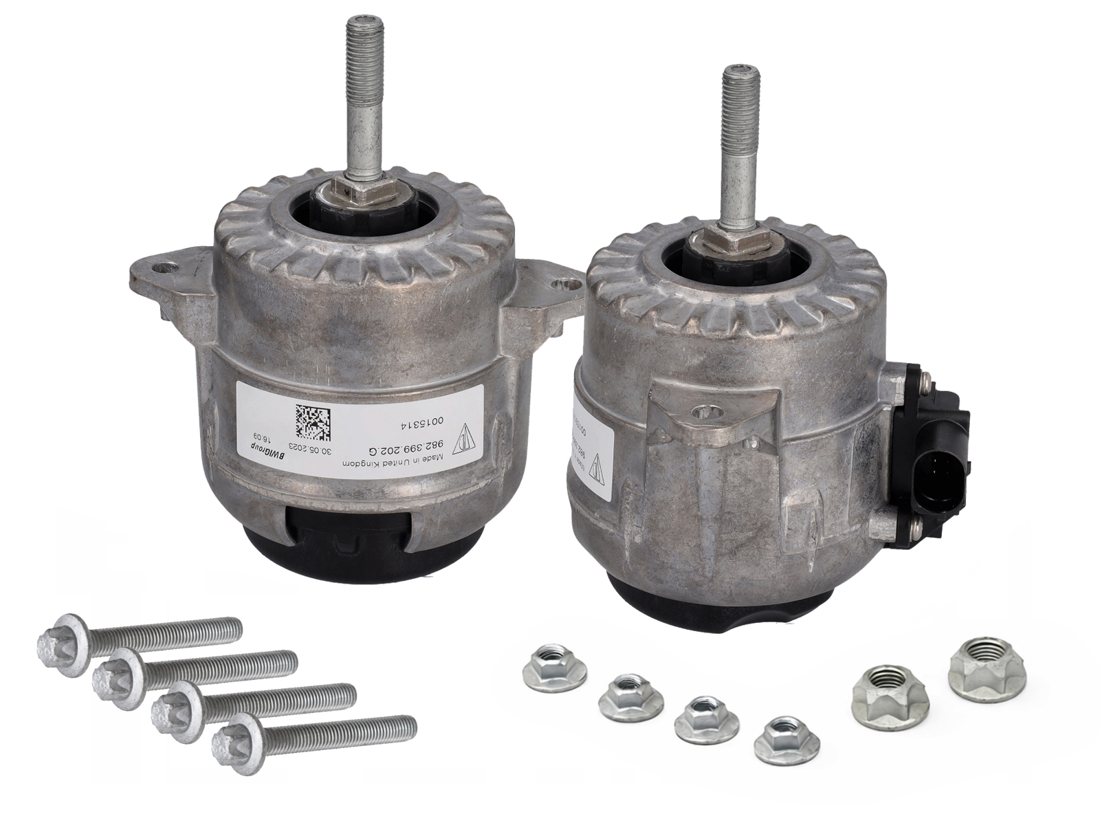 Gearbox mount set. This complete Genuine Porsche Gearbox Mount Kit includes two hydraulic gearbox mounts (982399201A) together with all required original mounting hardware for installation. The kit is designed to support the engine and transmission assembly on Porsche 718 Boxster and 718 Cayman (982) models without Dynamic Engine Mount