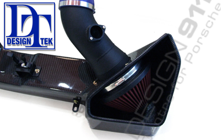 碳纤维气流成型 V-flo 进气套件、数控加工、计算机控制 V-flo 气流测试、滚塑成型、注塑成型以及无数工时,这些系统代表了进气技术的巅峰。DesignTek 进气系统安装在保时捷原厂进气箱位置,并利用原厂“冲压空气”新鲜空气管道来降低进气温度并增强动力。DesignTek 进气系统包含一个定制棉质空气滤清器和一个 6 英寸注塑文丘里管,可作为冷空气的真空管。所有这些组件共同作用,打造出当今市场上最强大的保时捷进气系统。