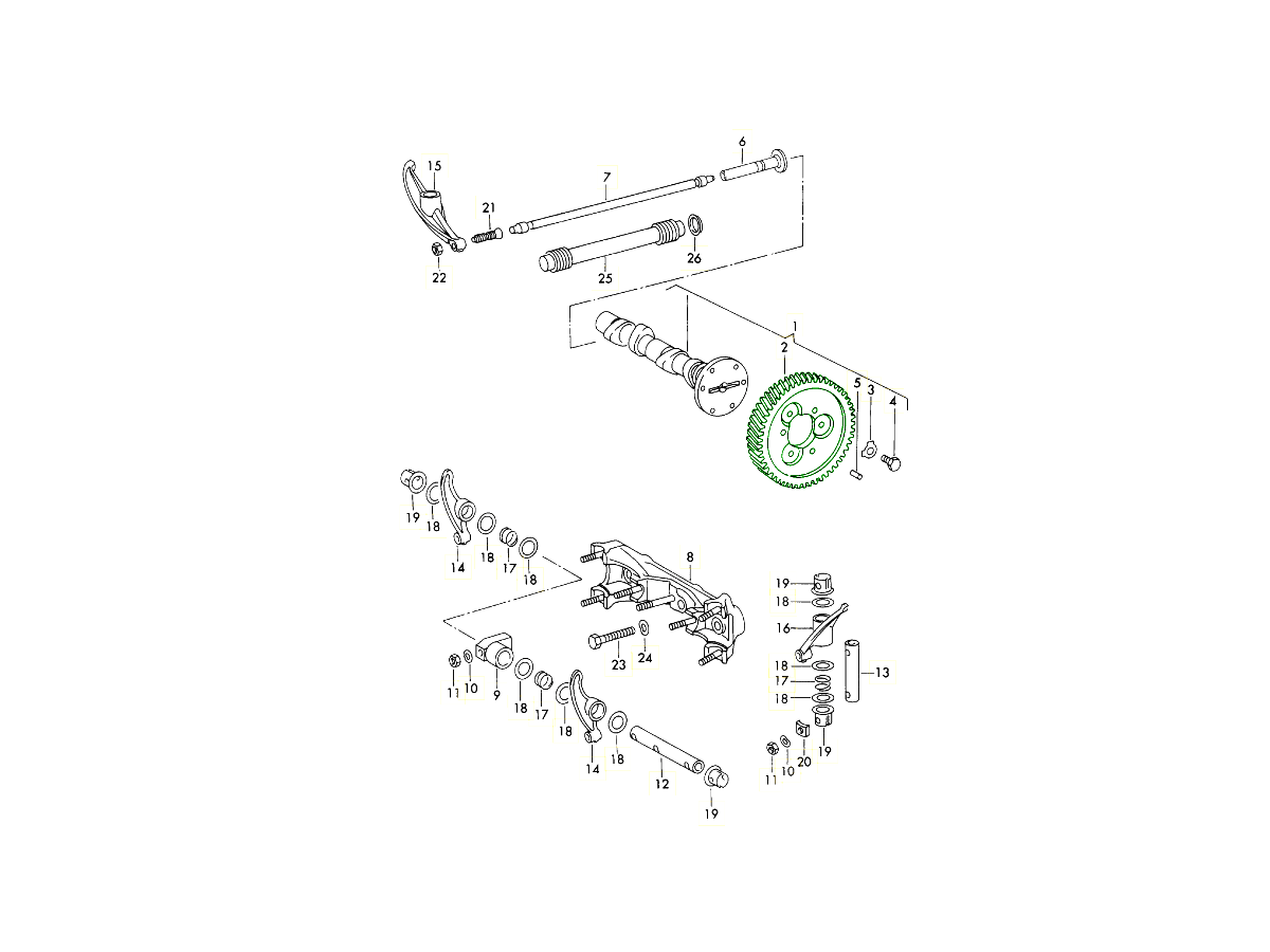- 轴承和法兰支撑轴并保持凸轮轴和曲轴之间的对齐。