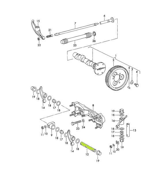 This rocker arm adjusting screw is not used on the Carrera versions of the Porsche 356