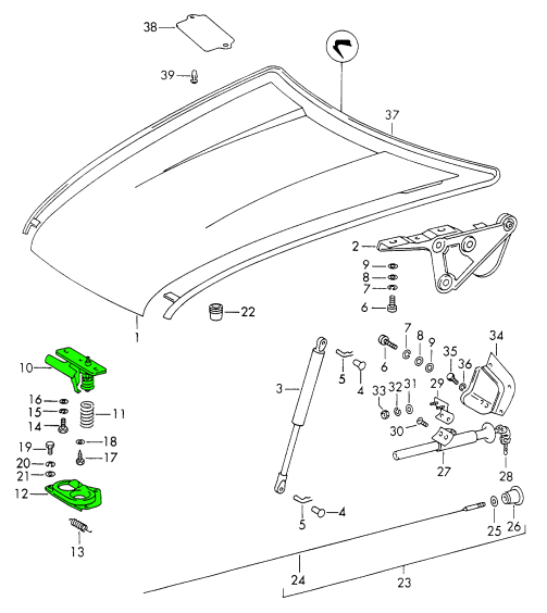 前发动机罩铰链。