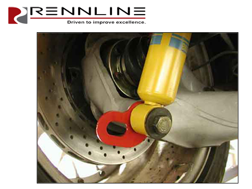 Rennline 的系紧装置由不锈钢制成,并采用红色粉末喷涂,因此拖车操作员可以轻松看到。安装系紧装置不会影响校准设置。所有新硬件均包含在套件中。Rennline 的重型/高负荷前系紧装置固定在 911 前悬架最坚固、最靠前的部位——A 形臂的前部。牵引钩由三个大螺栓固定,这些螺栓与将前 A 形臂固定到一体式车身的螺栓相同,并且专门设计为防滑板,可在穿越陡峭的车道或减速带时保护您的 911。后系紧装置的安装孔尺寸为 16.5 毫米。这与大多数减震器安装螺栓和其他几个悬架部件的尺寸相同。我们将发送直后系紧装置,但如果您需要 45° 或 90° 系紧装置,请致电。